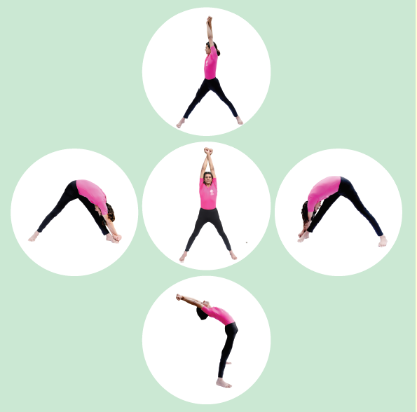 अब गहरी सांस लेते हुए पीछे की तरफ झुकें औऱ फिर इसके बाद सांस छोड़ते हुए दाहिने साइड मुड़ें।