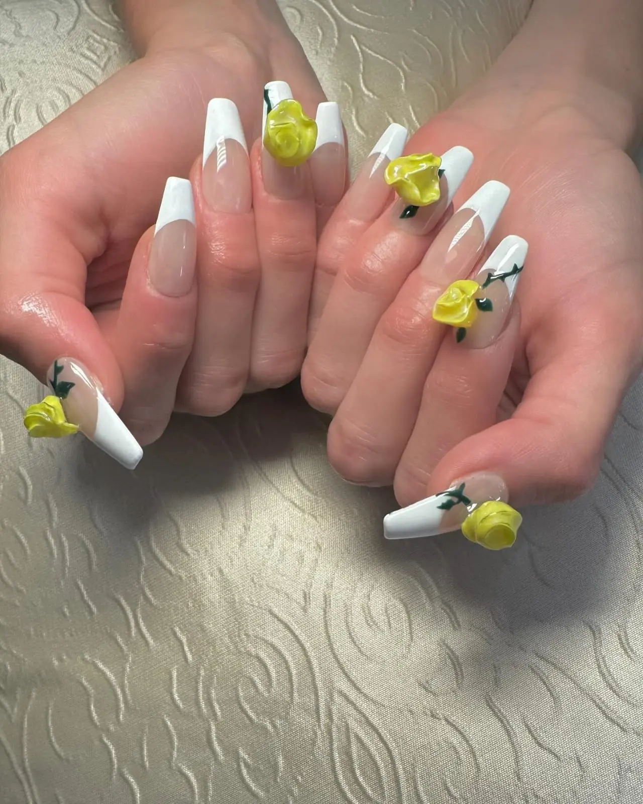 गीगी 2024 मेट गाला के लिए अपने खूबसूरत गाउन से मैचिंग नेल डिजाइन को कैरी करते नजर आई। गीगी का फ्रेंच नेल्स के साथ हैंड स्कल्पटेड 3D फ्लोवर डिजाइन क्लासिक था।