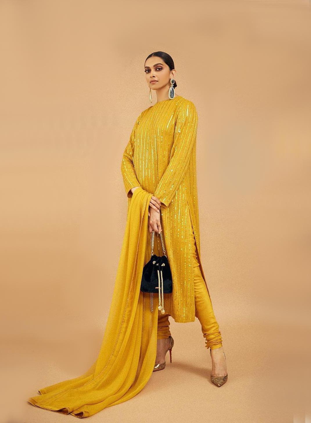 गोटा पट्टी वाले कुर्ती और फ्लेयर्ड पैंट में दीपिका हॉट लग रही हैं। स्मोकी आईज़ मेकअप के साथ उन्होंने मिनिमल एक्सेसरीज कैरी किया है।
