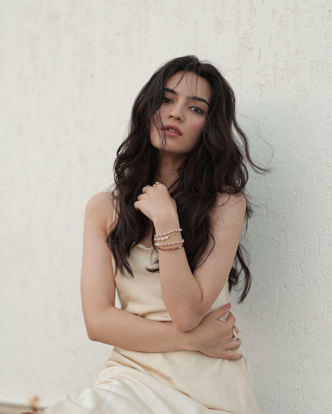 नेवी ब्लू कलर के शिमर ऑफ शोल्डर ड्रेस में एक्ट्रेस बेहद हॉट लग रही हैं। रोज़ गोल्ड मेकअप के साथ उन्होंने अपने चिक बॉन्स को हाइलाइट किया है।