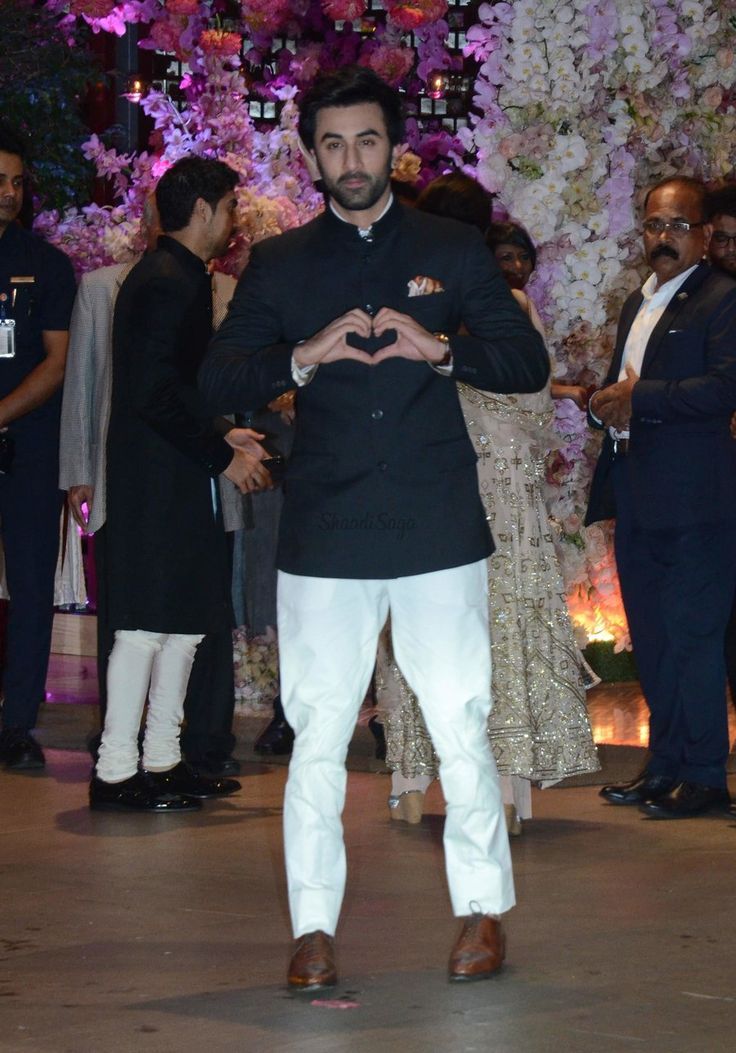 इस फोटो में रणबीर कपूर ब्लैक कलर के फ्लोरल एंब्रॉयडरी वाले शेरवानी और सफेद चूड़ीदार में बेहद हॉट लग रहे हैं।