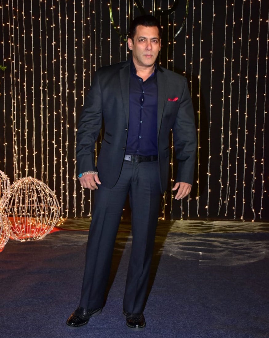 इस फोटो में सेक्विन वर्क वाले कोट के साथ सलमान ने मैचिंग ब्लैक शर्ट और प्लेन पैंट पहना है।