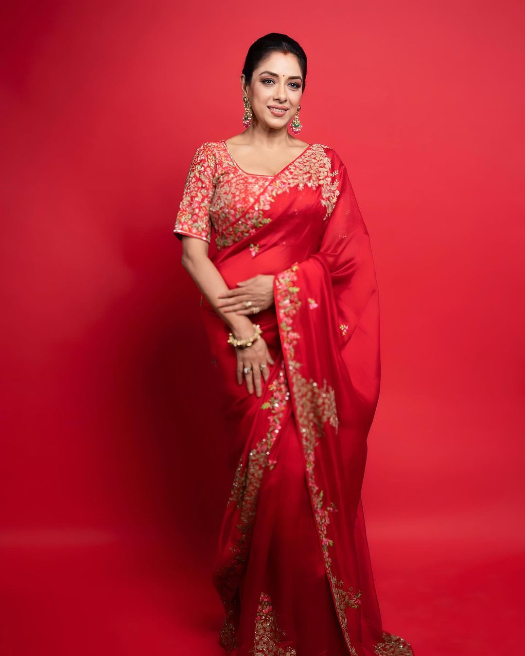 गोल्डन ऑर्गेंजा साड़ी के साथ रूपाली ने पिंक एंब्रॉयड्रेड ब्लाउज़ पहना है। गोल्डन झुमके के साथ ग्लॉसी मेकअप उनकी खूबसूरती बढ़ा रहे हैं।