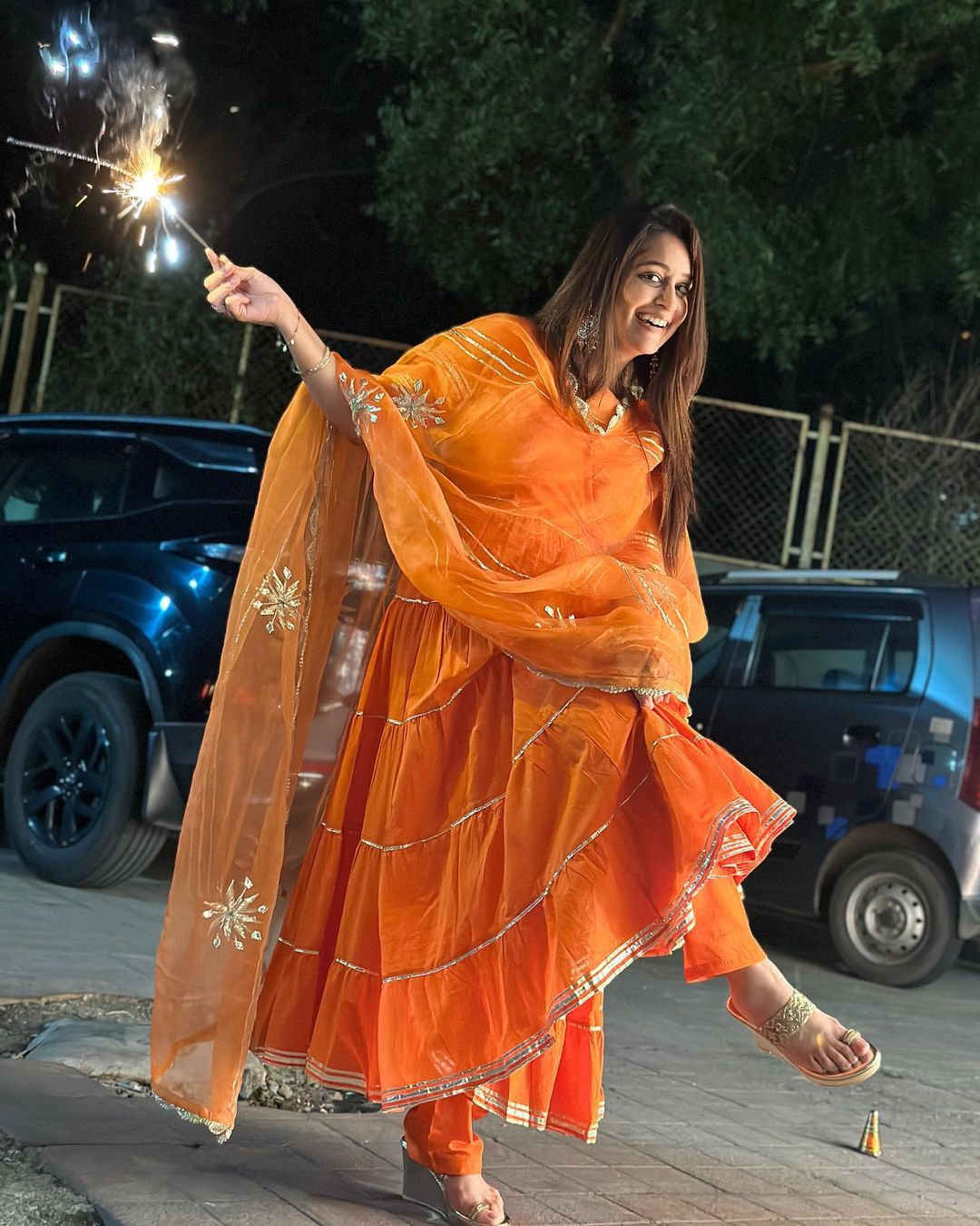 दीपिका ने पर्पल शरारा सूट पहना है। जिसमें गोल्डन धागों से कढ़ाई की गई है। उन्होंने झुमकों और मेकअप के साथ लुक पूरा किया है।