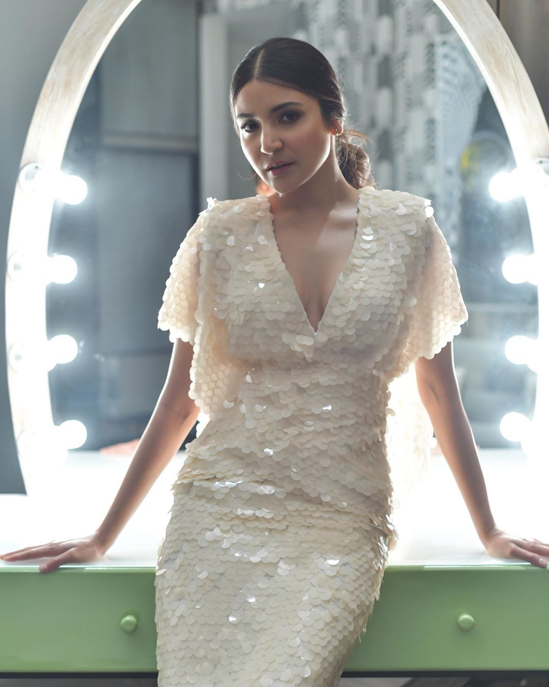 पेस्टल ग्रीन कलर के थाई-स्लिट रुच्ड गाउन में प्रियंका चोपड़ा स्टनिंग लग रही हैं। हूप्स इयरिंग्स के साथ उन्होंने बालों में बन बनाया है।