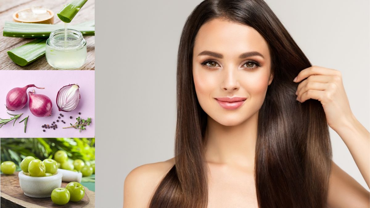 प्याज के रस में एलोवेरा जेल मिलाकर बालों में लगायें और एक घंटे बाद शैम्पू से धो लें।