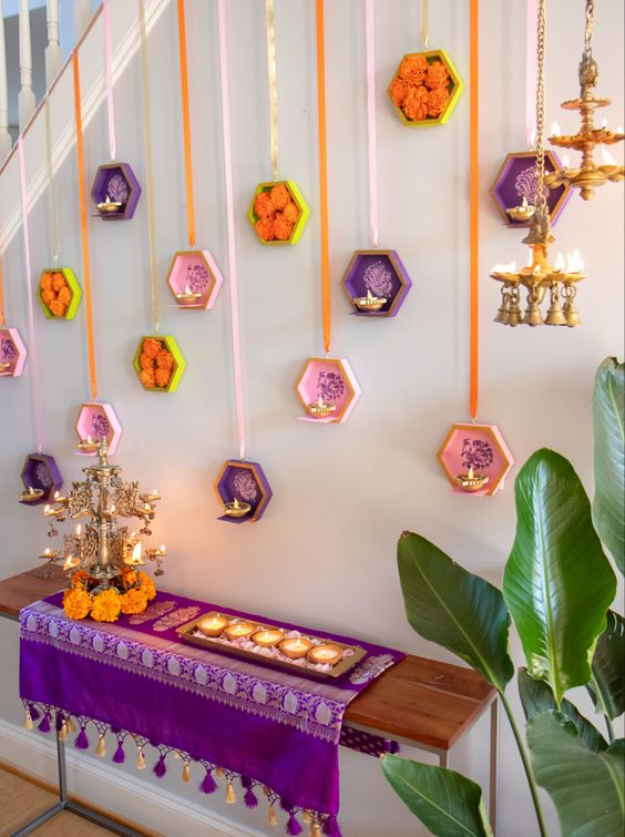 अगर मंदिर में लैम्प लगाना चाहते हैं, तो अपनी पुरानी चूड़ियों से लैम्प बना सकते हैं। इसके लिए आप चूड़ियों को जोड़कर उसे हैंगर में टांग सकते हैं। साथ में लाइट लगा सकते हैं।