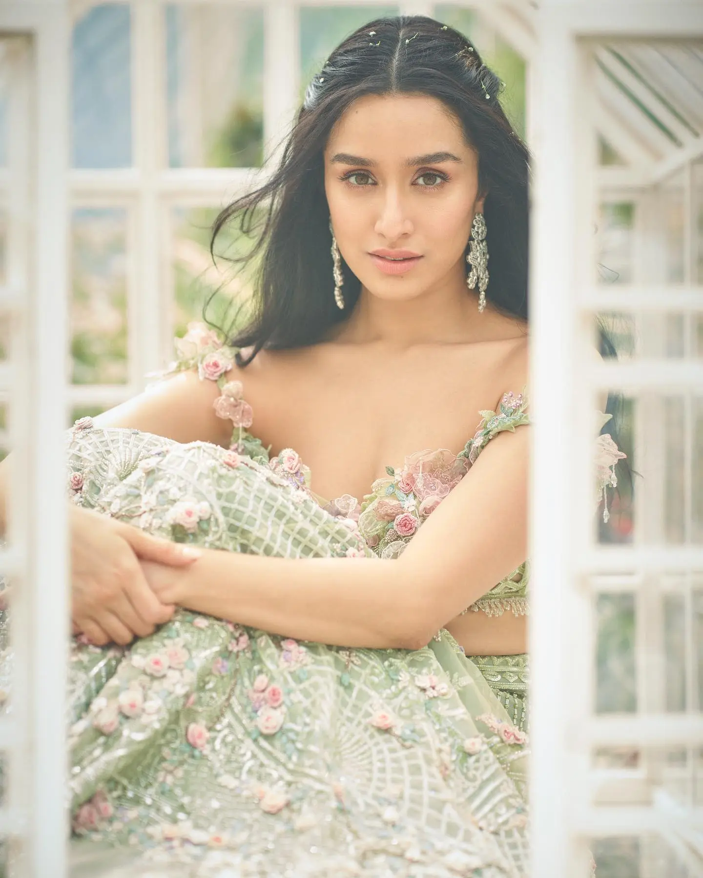 इस लुक में श्रद्धा कपूर ने फ्रंट ट्विस्टेड ओपन हेयर स्टाइल को कैरी किया है। इसके लिए आप फ्रंट सेक्शन से बालों को लेकर पीछे की तरफ ट्विस्ट करके टाय कर सकती हैं।