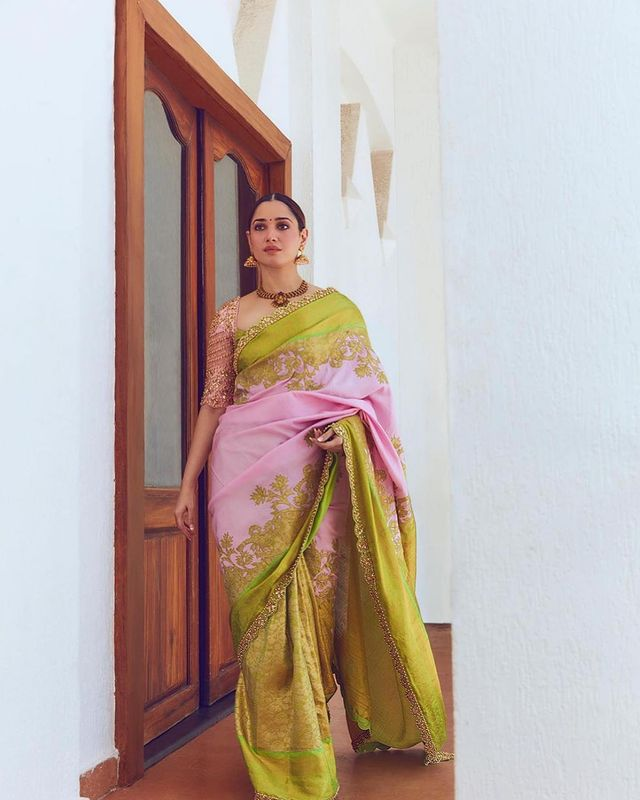 इस बनारसी साड़ी को पहनकर तमन्ना काफी प्यारी लग रही हैं। उनका ये ट्रे़डिशनल अंदाज काफी इंस्पायरिंग है।