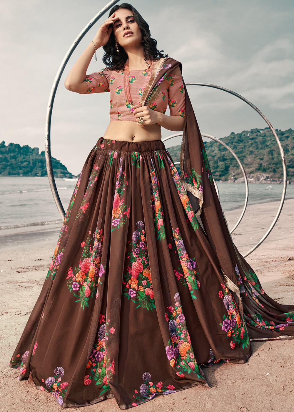 सिर्फ फ्लोरल प्रिंट का लहंगा, ब्लाउज और दुपट्टा आपको एक ट्रेंडी और ब्यूटीफुल लुक देने के लिए काफी है।
