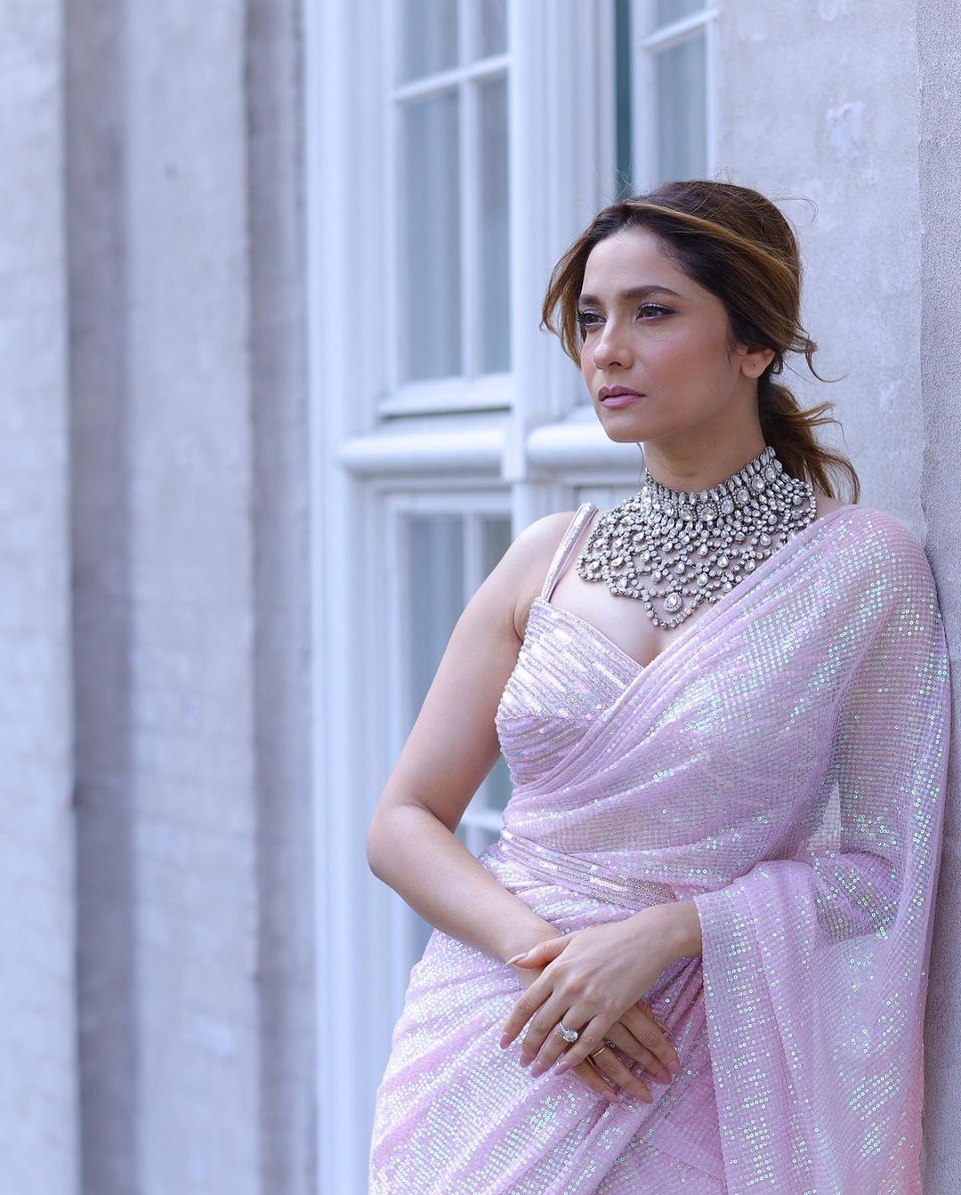 पिंक साड़ी में टीवी स्टार अंकिता लोखंडे के बेहद खूबसूरत नेक पीस कैरी की है, जिसने फैंस का दिल चुरा लिया।